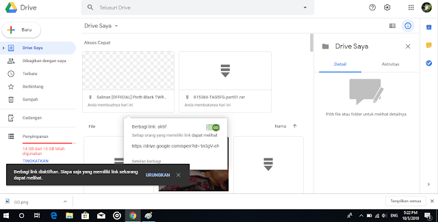 - Jika sudah aktifkan Berbagi link dengan klik kanan pada file tadi dan otomatis akan memberikan link baru dan siap untuk di download.